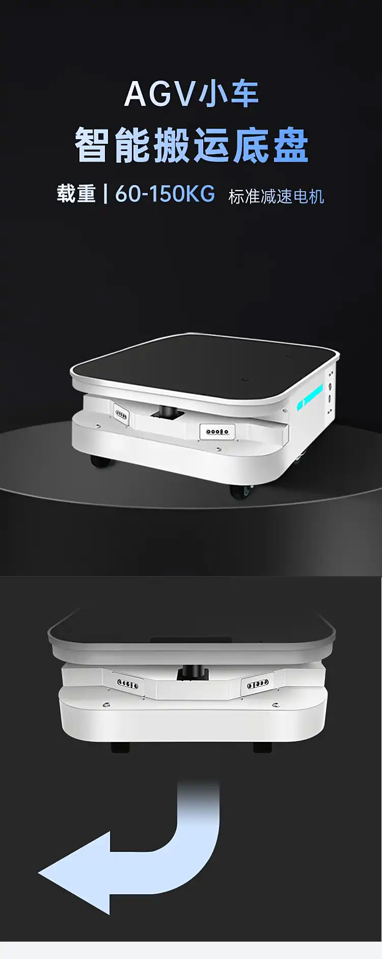 米豆潛伏式舉升機器人是一款智能搬運底盤,載重60-150Kg區間可選,可集成智能化設備如機械臂或滾軸等。運動靈活,可在產線等狹小空間智能運行,減少人員無效走動,提高人員效率。