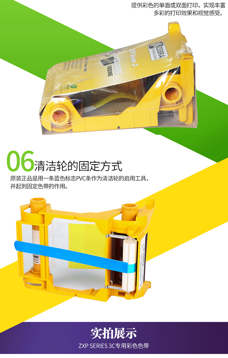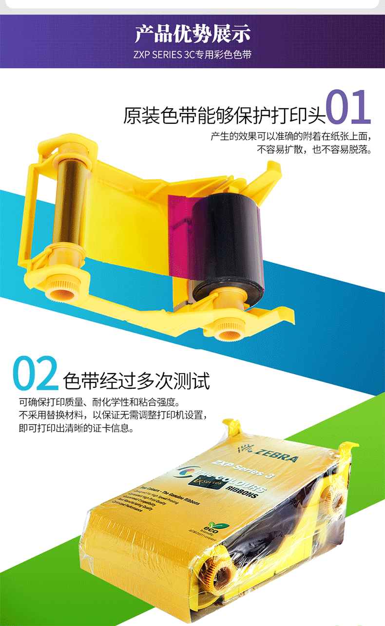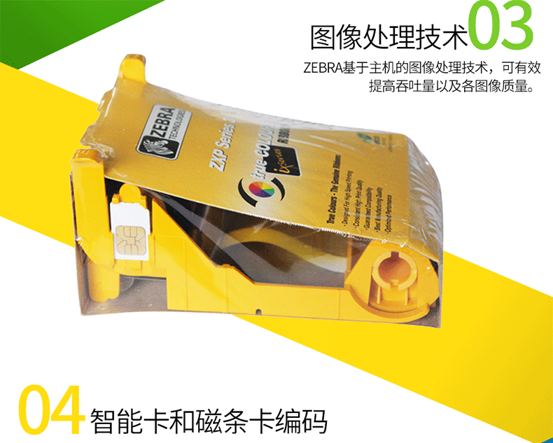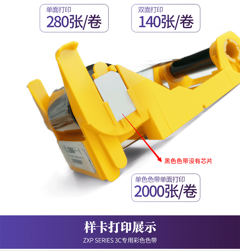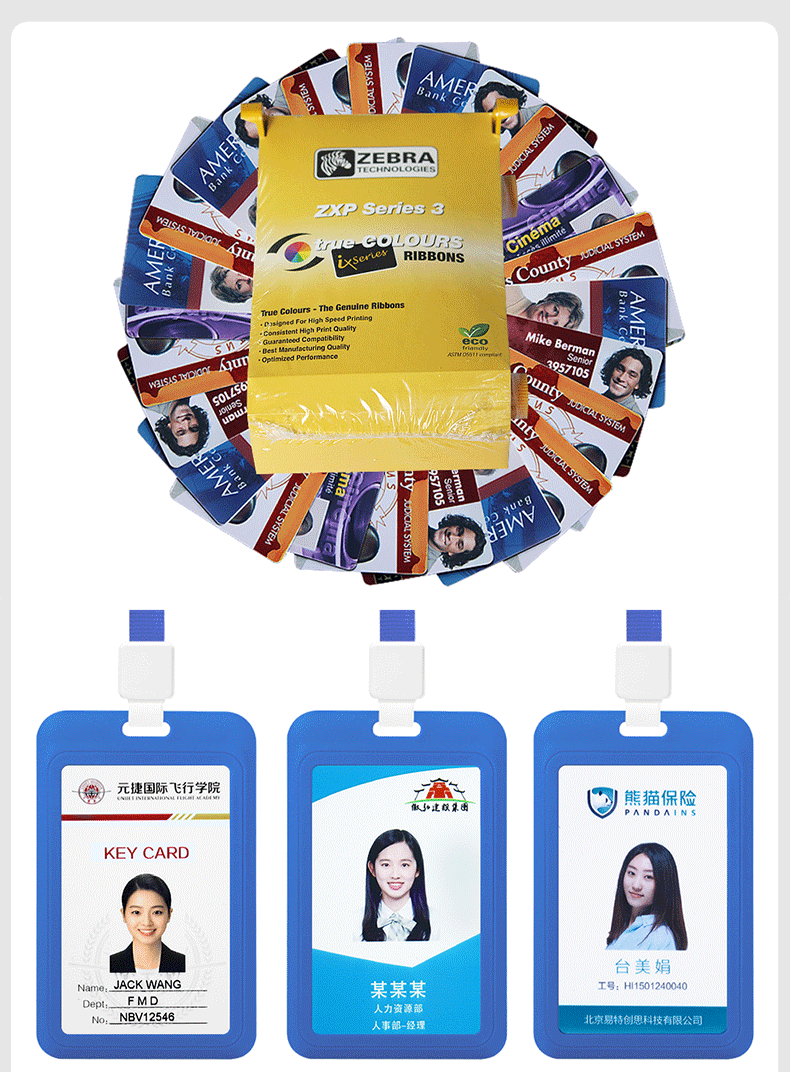 斑馬ZXP3C證卡打印機屬于直印卡片制卡機,常用色帶有彩色帶800033-340CN色帶,一個色帶打印200張卡,可以打印彩色和黑白內容,實現將客戶排版的卡圖內容打印到PVC空白卡上。