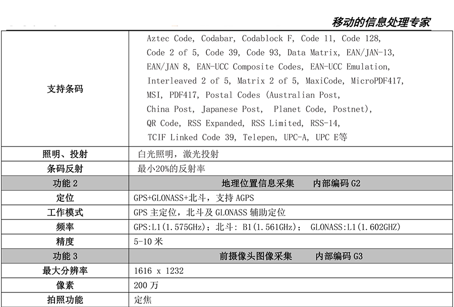 支持一維、二維、RFID、NFC、Camera、GPS、PSAM、RS232/485、OTG、身份證等數據采集。