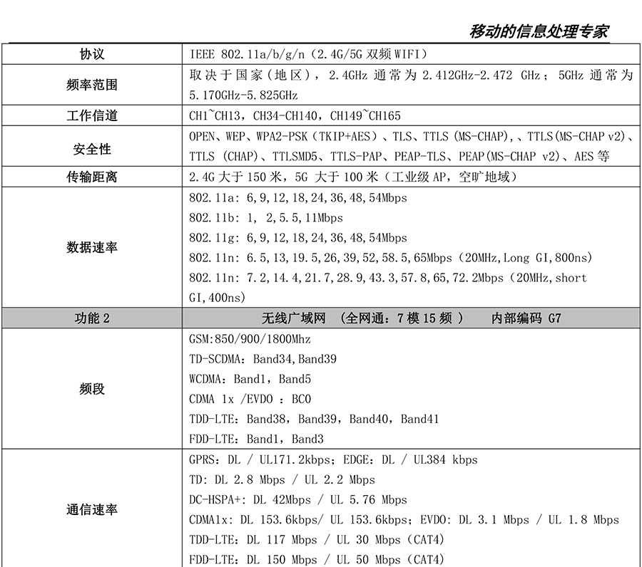 4G全網通:支持移動/聯通/電信(TD-SCDMA/WCDMA/EVDO/TDD-LTE/FDD-LTE)。