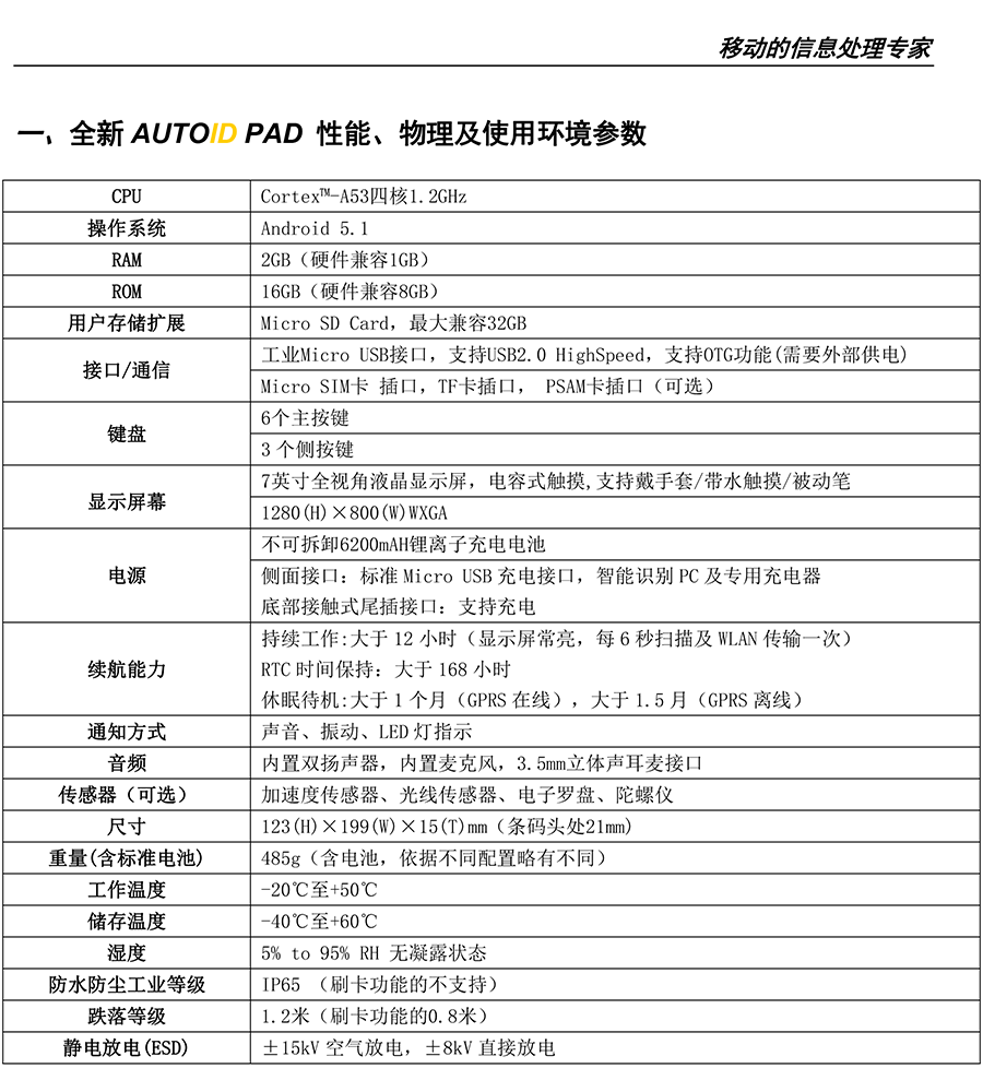 全新AUTOID Pad是一款輕薄小巧、具有高防護等級的工業級安卓平板,具備多種數據采集和無線通信功能,滿足大屏顯示、行業專用功能等需求,可應用于各種復雜苛刻的應用環境。