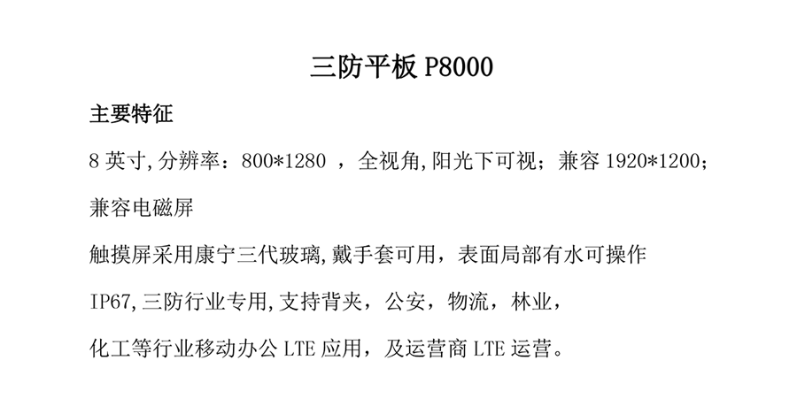 P8000三防工業平板,防水防塵抗摔落,I67工業等級,廣泛應用于公安,物流和林業管理。