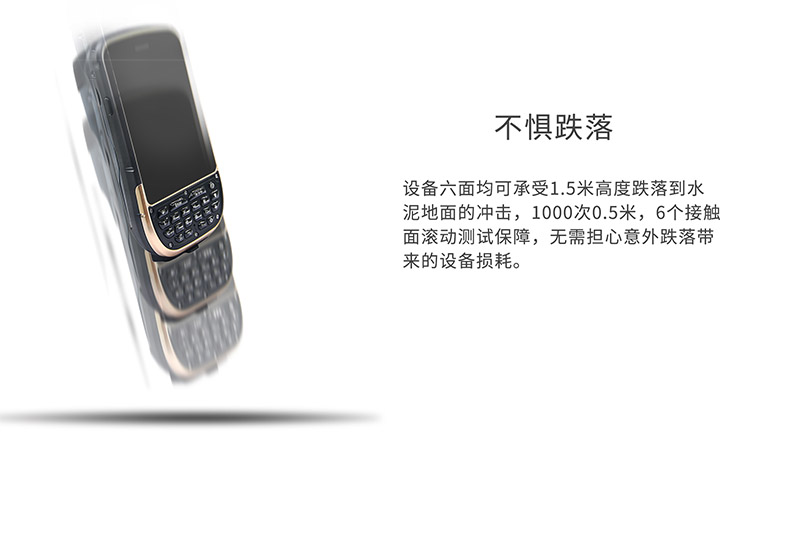 跌落測試 在操作范圍內,6面均可承受1.5米高度跌落到水泥地面的沖擊