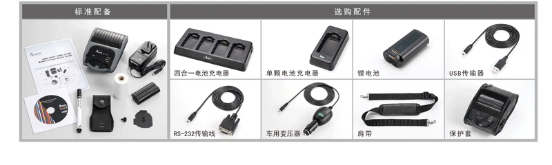 標準配件 | 腰帶、鋰電池、變壓器、清潔筆、紙卷、快速入門手冊、