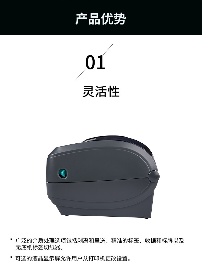 斑馬gx430t外觀簡(jiǎn)潔時(shí)尚,提供最廣泛的功能、4英寸/秒的速度和 300 dpi的分辨率,能夠滿足您低到中等強(qiáng)度打印的需求,小巧便攜,非常節(jié)省桌面空間。GX430t 斑馬打印機(jī)標(biāo)配采用的是EPL和ZPL編程語(yǔ)言以及三重連接,可方便地與現(xiàn)有系統(tǒng)集成。10/100 內(nèi)部以太網(wǎng)帶來(lái)更大的靈活性。適用于各類行業(yè)和應(yīng)用的豐富的選件,例如,可調(diào)節(jié)的介質(zhì)傳感器、切紙器和剝離器。