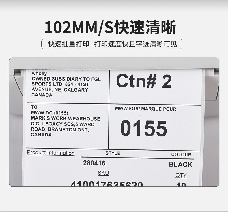 打印速度:4英寸/102毫米/秒