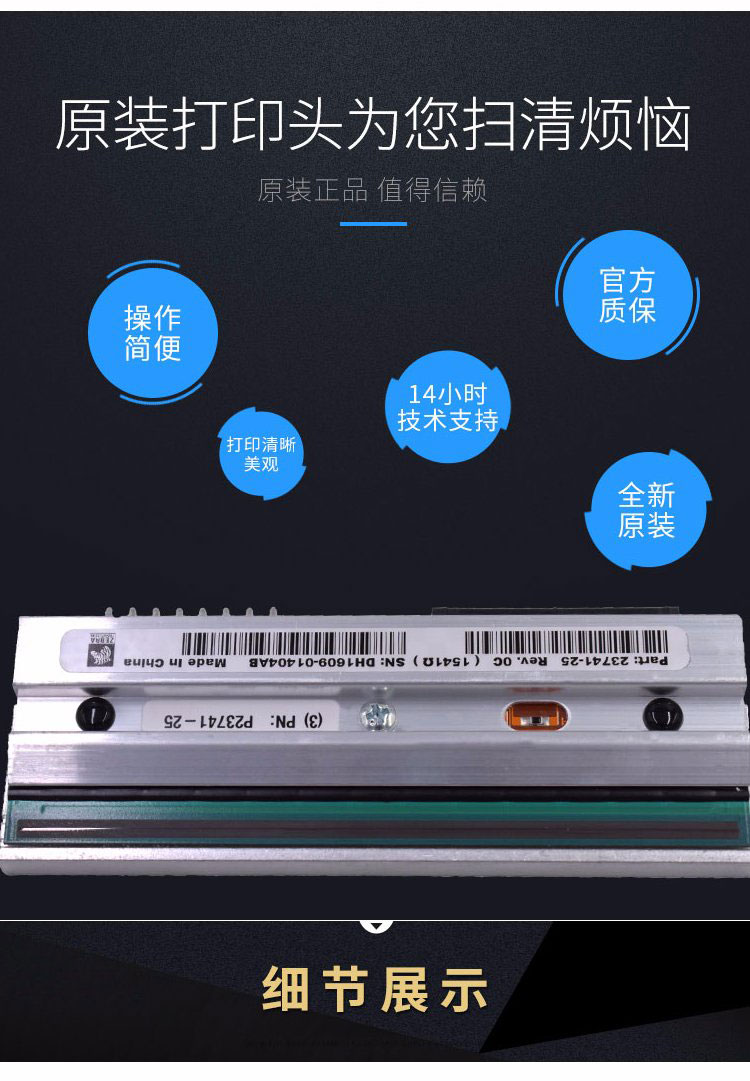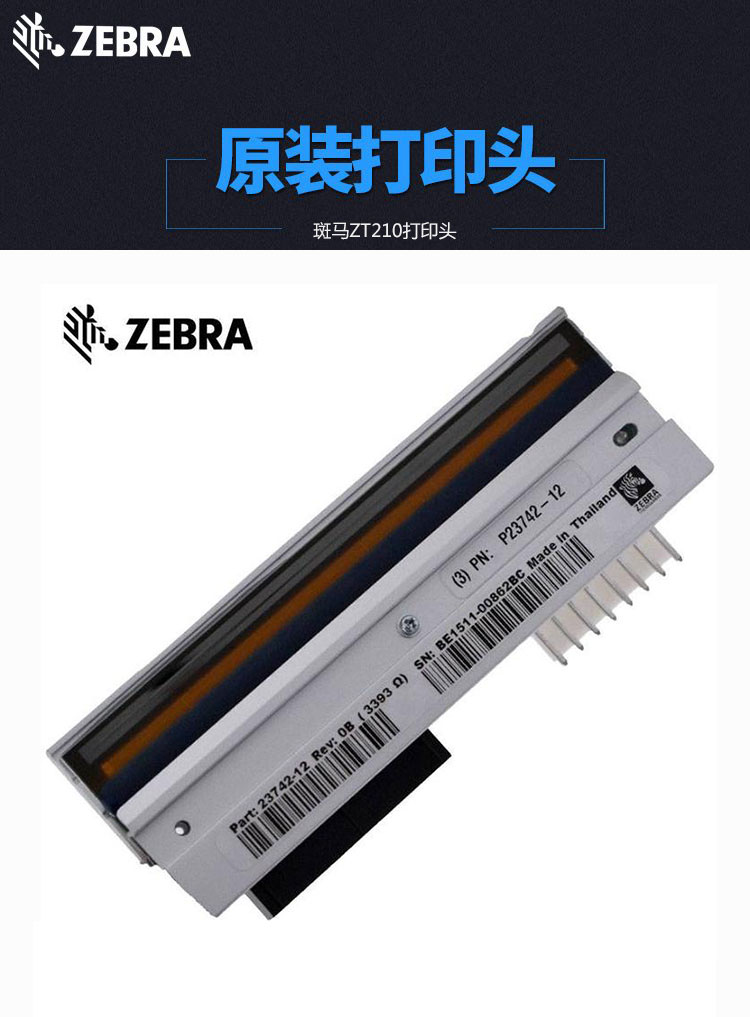 產品類型: 斑馬條碼打印機打印頭;產品型號: ZT210/ZT230 203 DPI 打印頭;產品部件號:P1037974-008